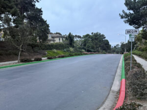 Last fall the Encinitas City Council amended their city code to establish three hour time limit parking along the entire length of Paseo de las Verdes. The community was recently informed that they have completed the implementation of this change by painting the curbs green (except those adjacent to intersections, crosswalks and fire hydrants) and installed signage that indicates that vehicles cannot park for longer than three hours on this street. The time limit will allow visitors to use the Las Verdes Park and to walk the trails.
